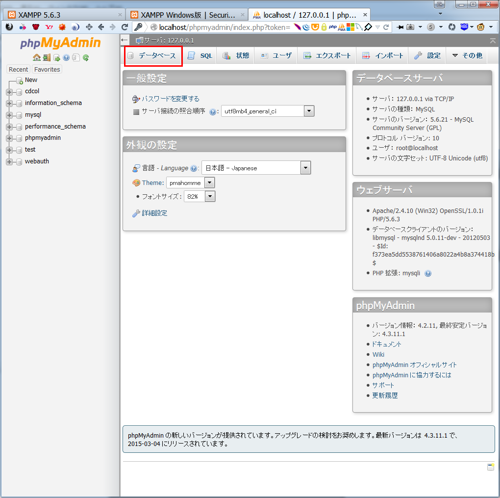 そこで、ローカルに一気にインストールできるツールが出回っている。XAMPP(ザンプ)と言うツールだ。いわゆる、LAMP(Linux、Apache、MySQL、PHP or Perl、これはLinux版)のWindows版のツールと言う意味らしい(なので頭の文字がLinuxではなくx-Windowって意味になってる?)これをインストールするとWordpress以外は一気にインストールできるのでお勧めだ。 XAMPP Installers and Downloads for Apache Friendsに行き、XAMPPをダウンロードしよう。