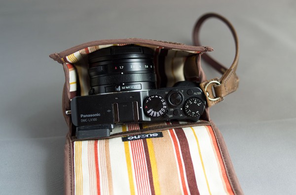 こんな風にコンデジ2個+アクセサリー、または標準レンズ付き一眼レフ+交換レンズまたはコンデジ、アクセサリーなどを入れるのにちょうどいい。が、LX100単体で持ち歩くにはちょっとでかすぎるわけで。